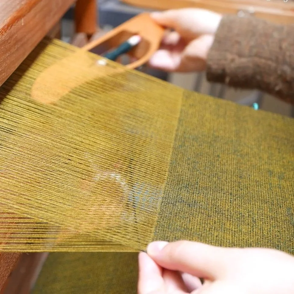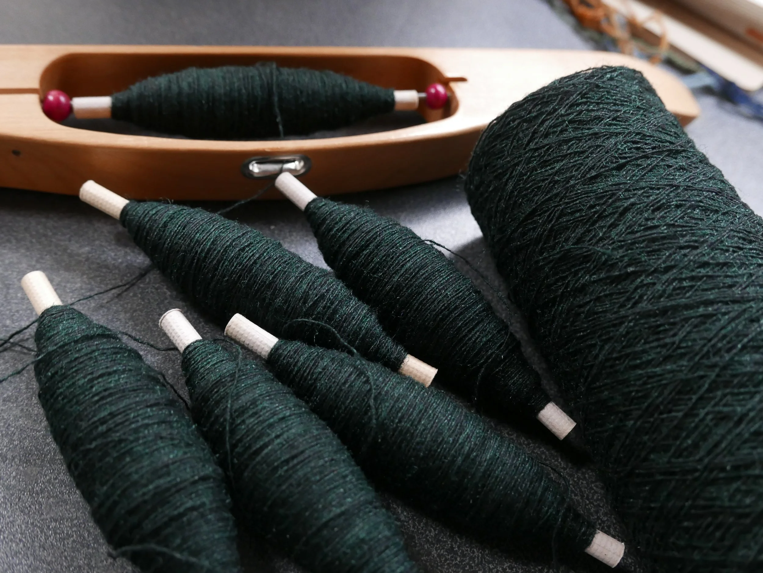 10. A weft thread is chosen and wound onto bobbins.