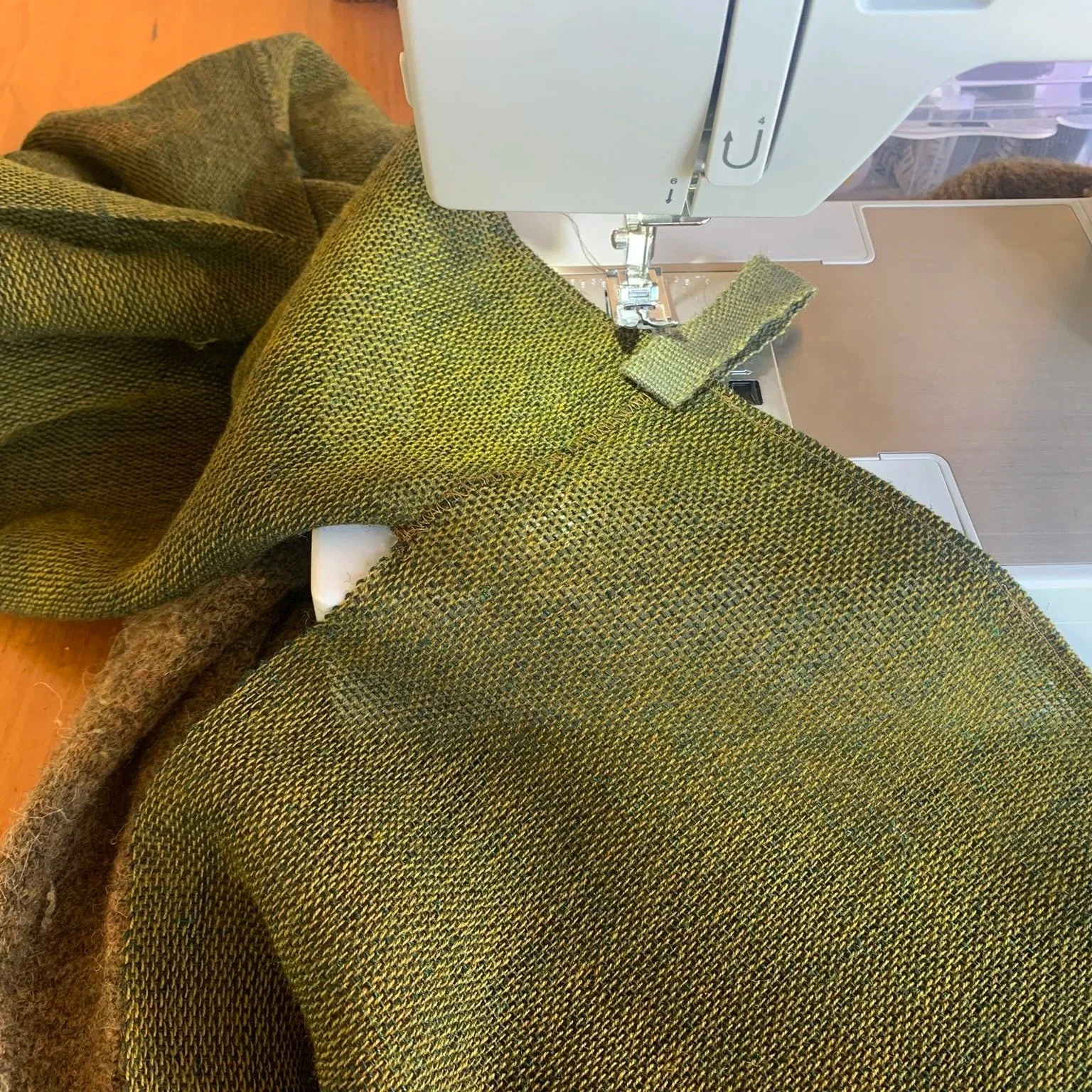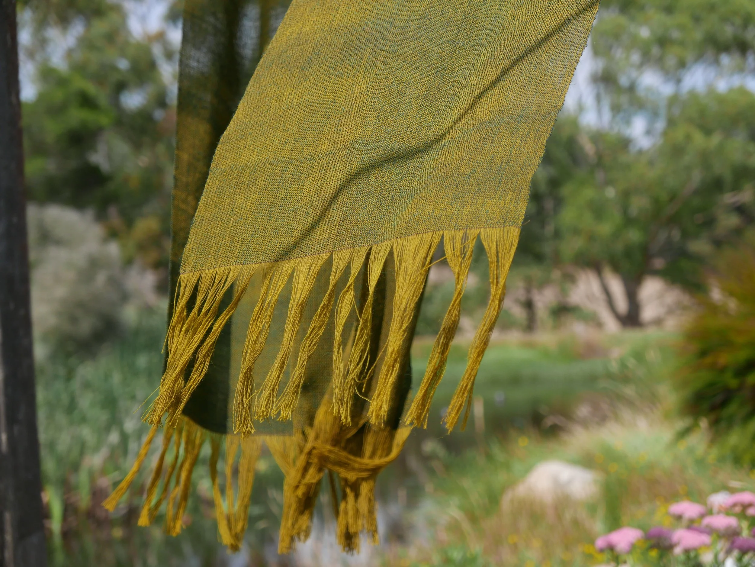 13. At the back, I give space to cut my cloth off, leaving fringe length.