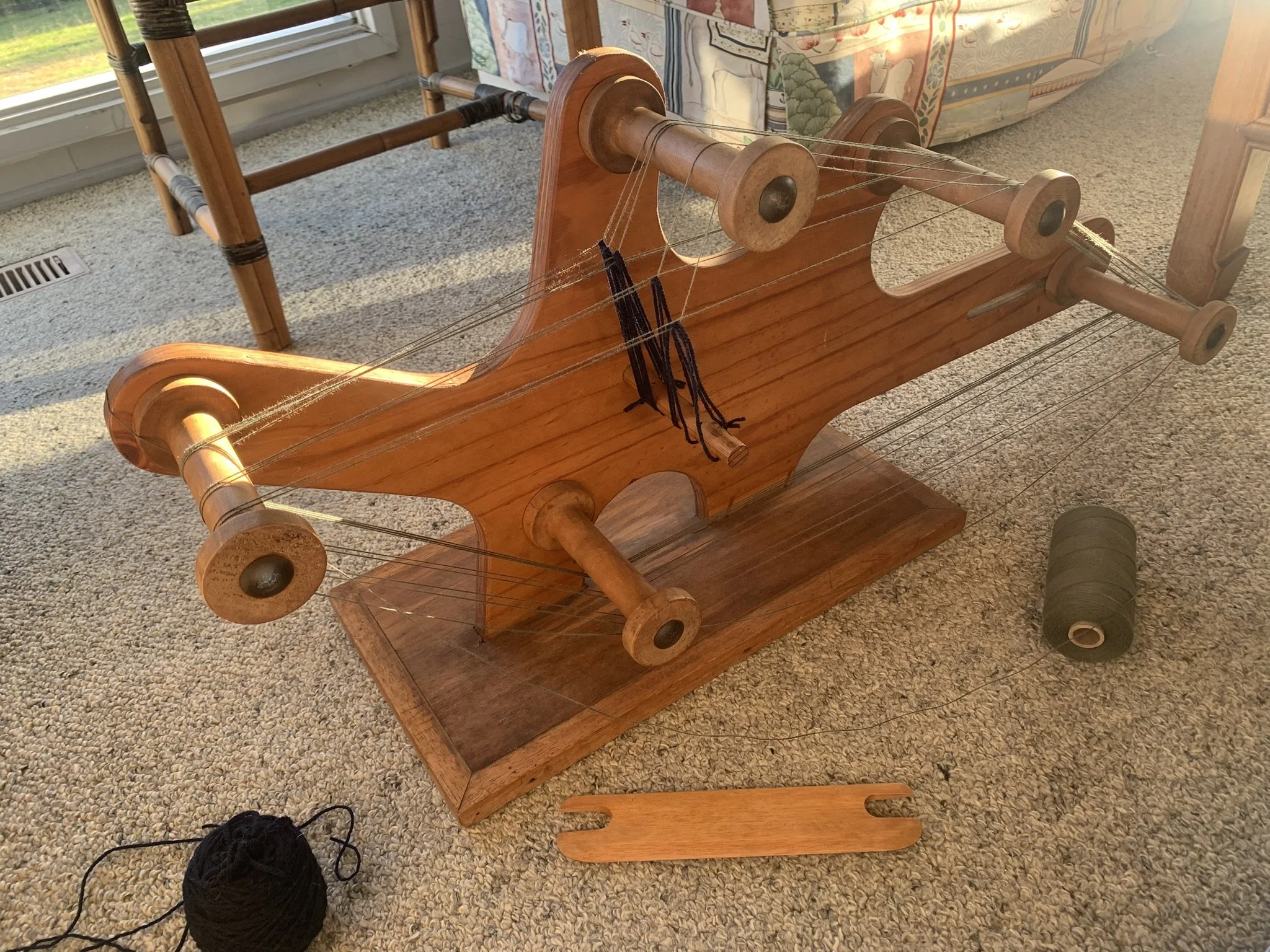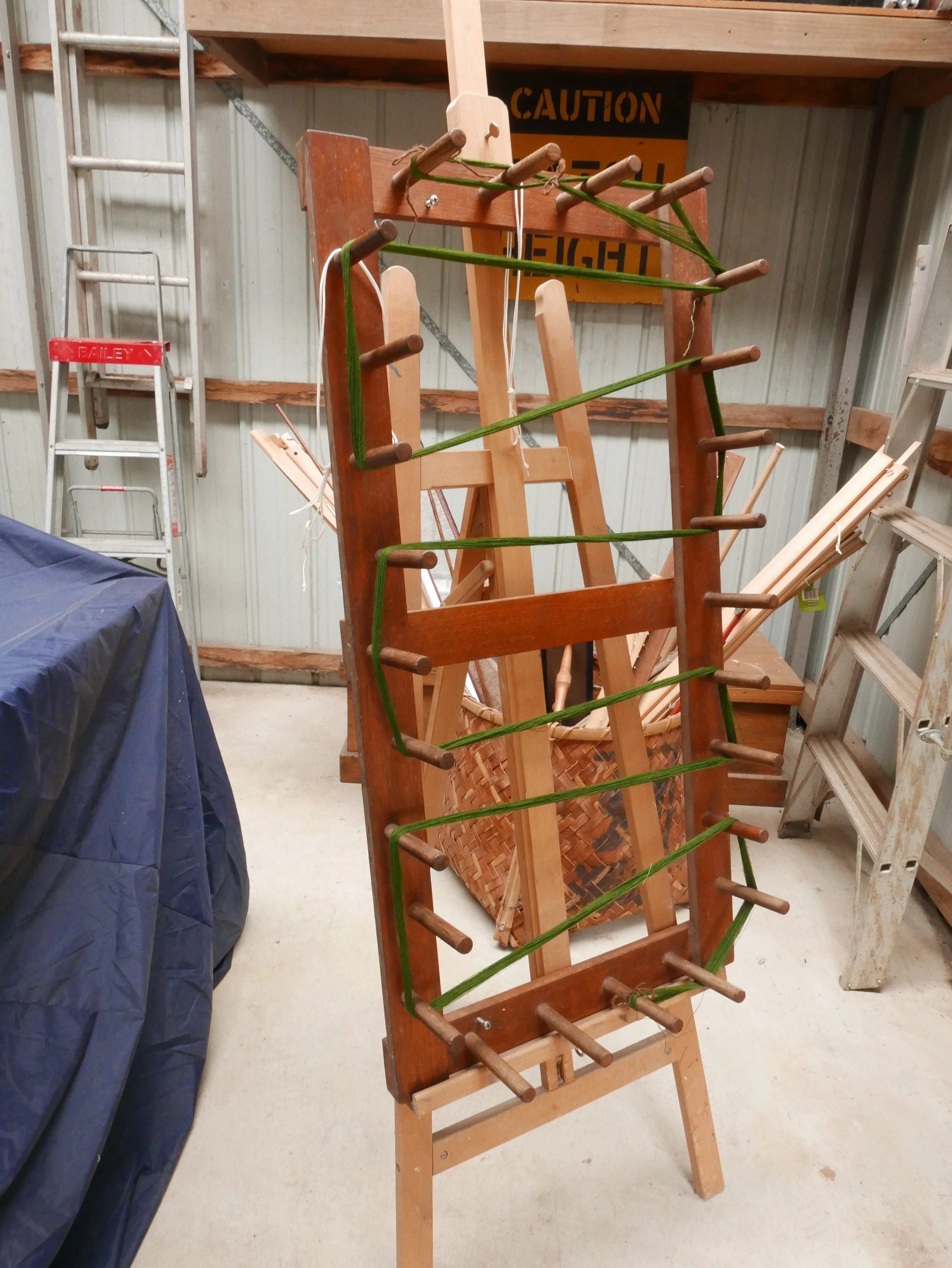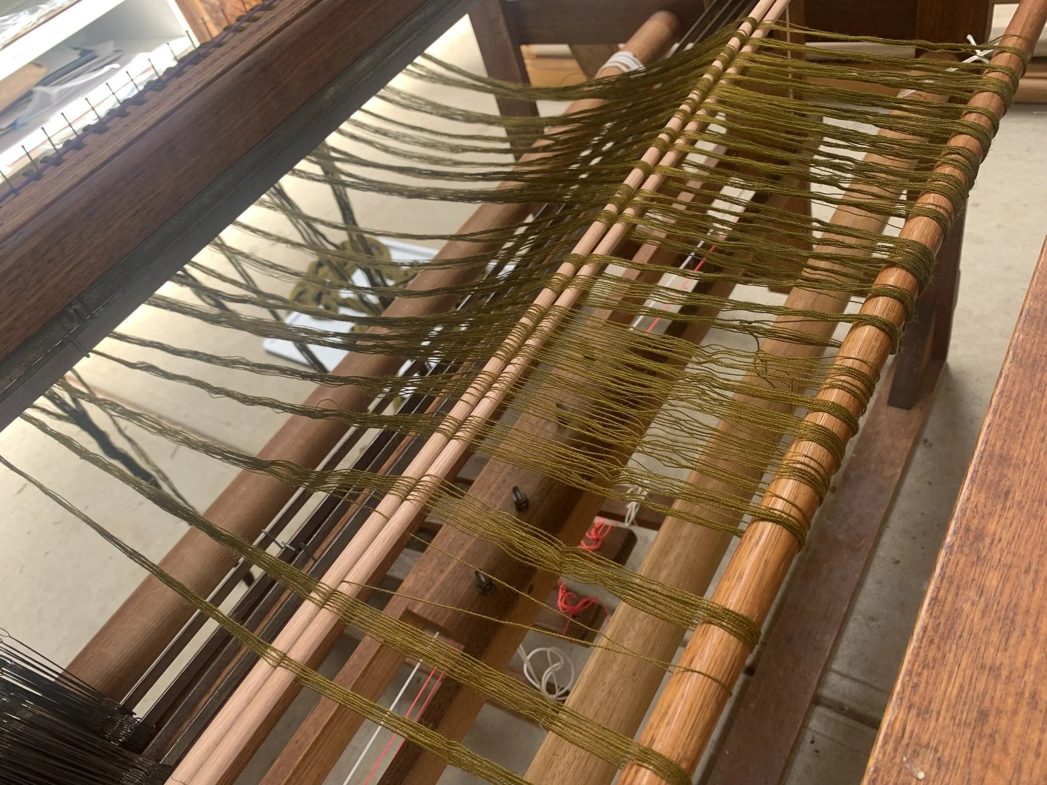 2. The warp is tied onto the loom. This particular one was in two parts.