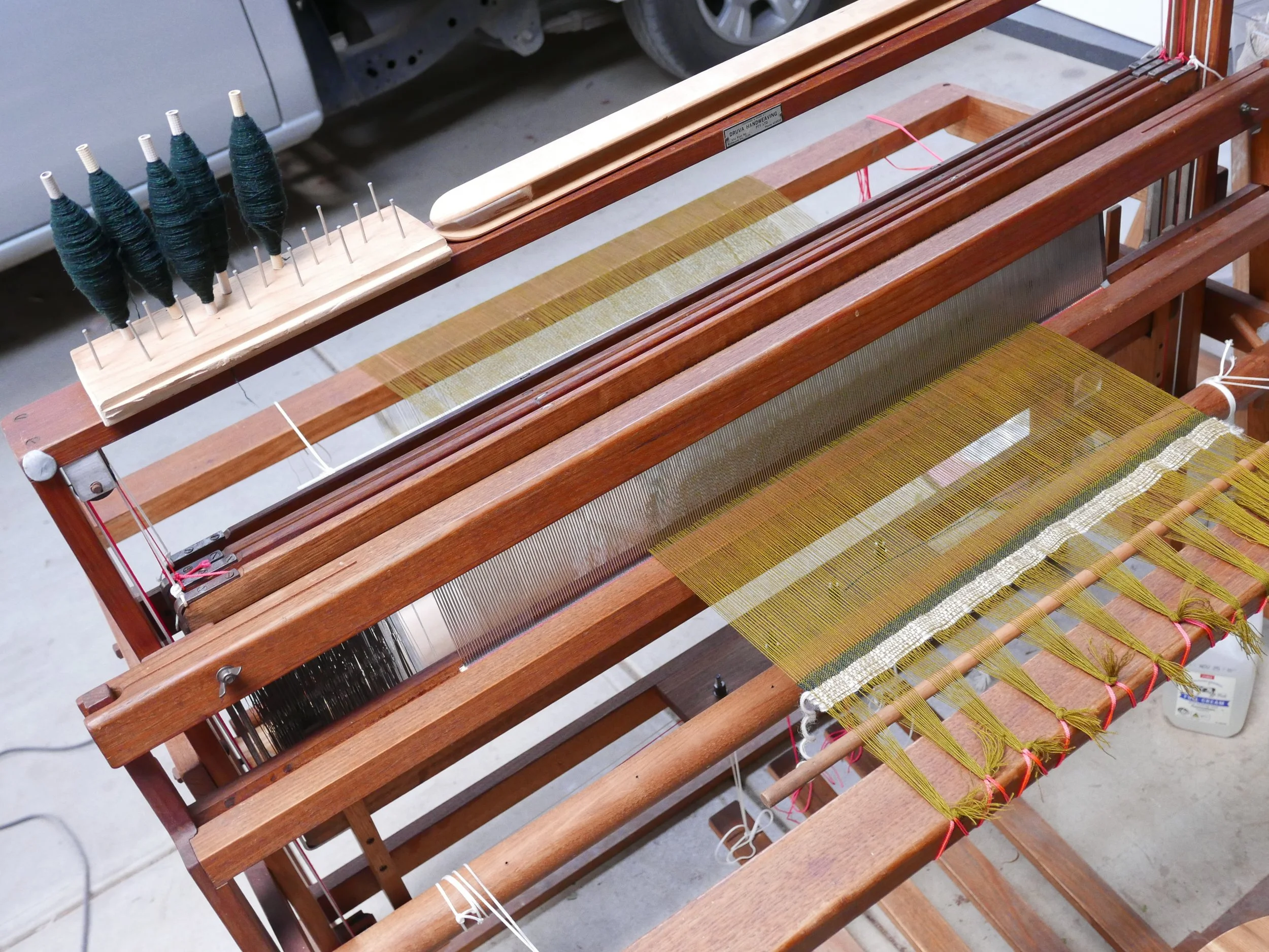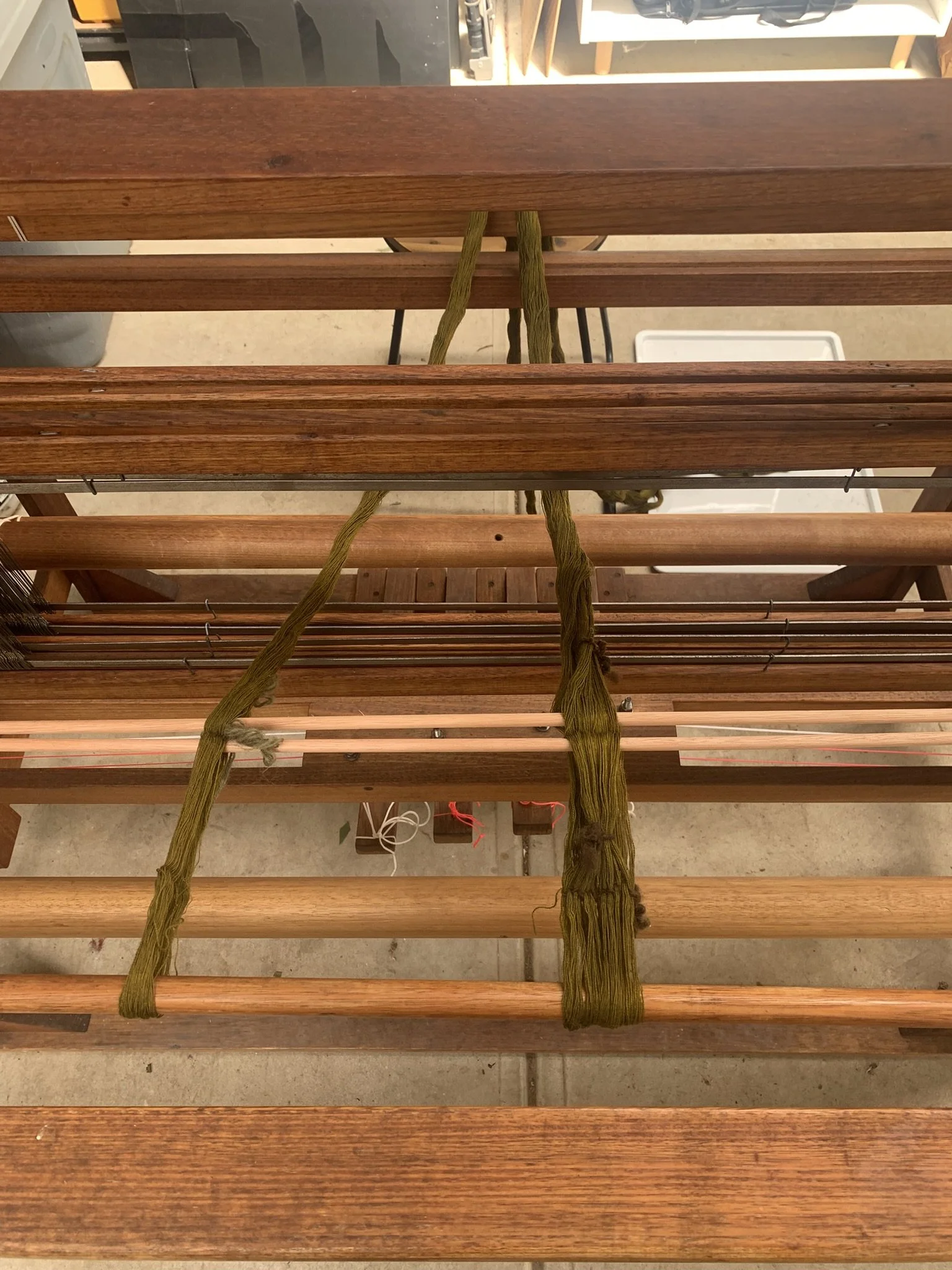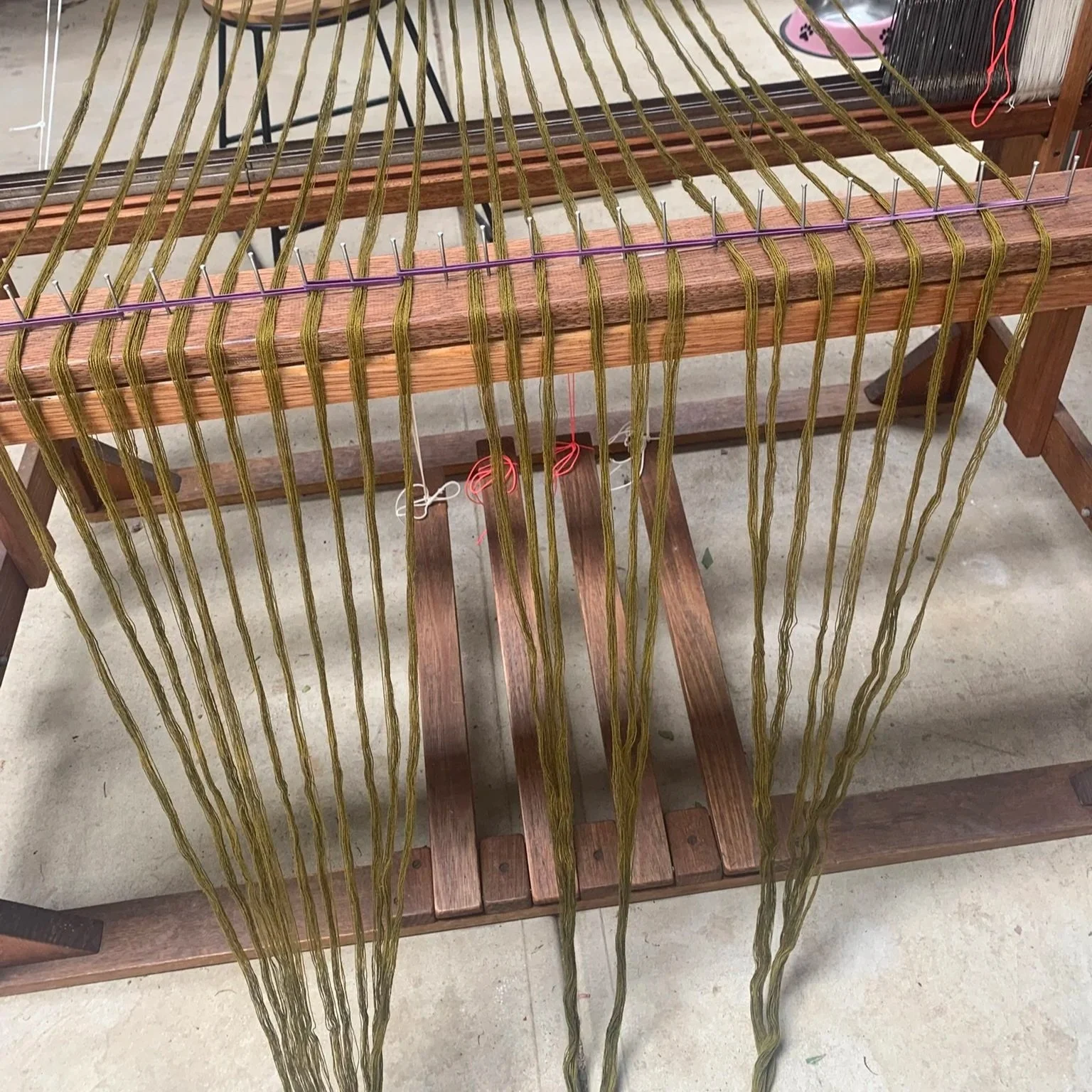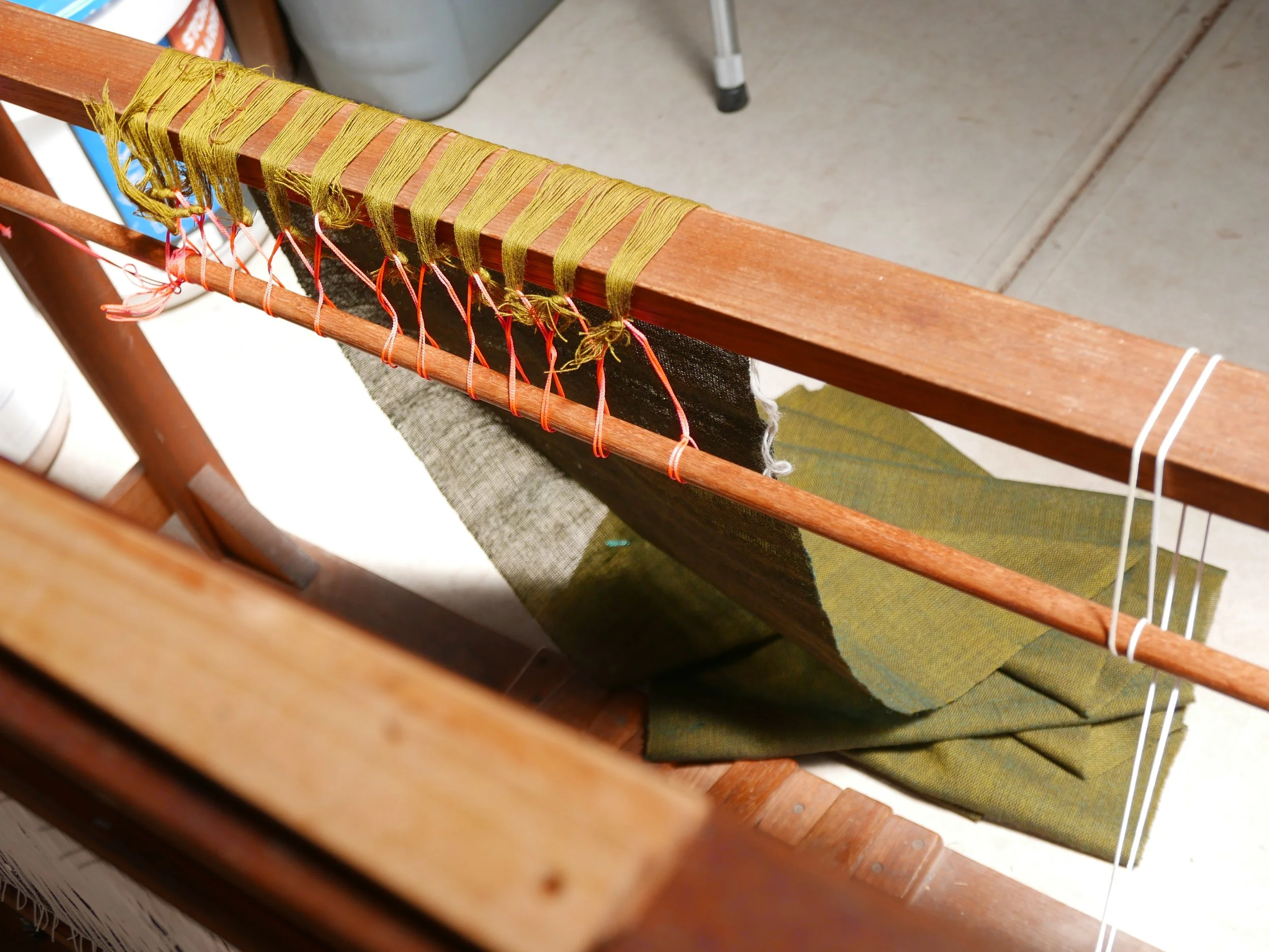2. The warp is tied onto the loom. This particular one was in two parts.