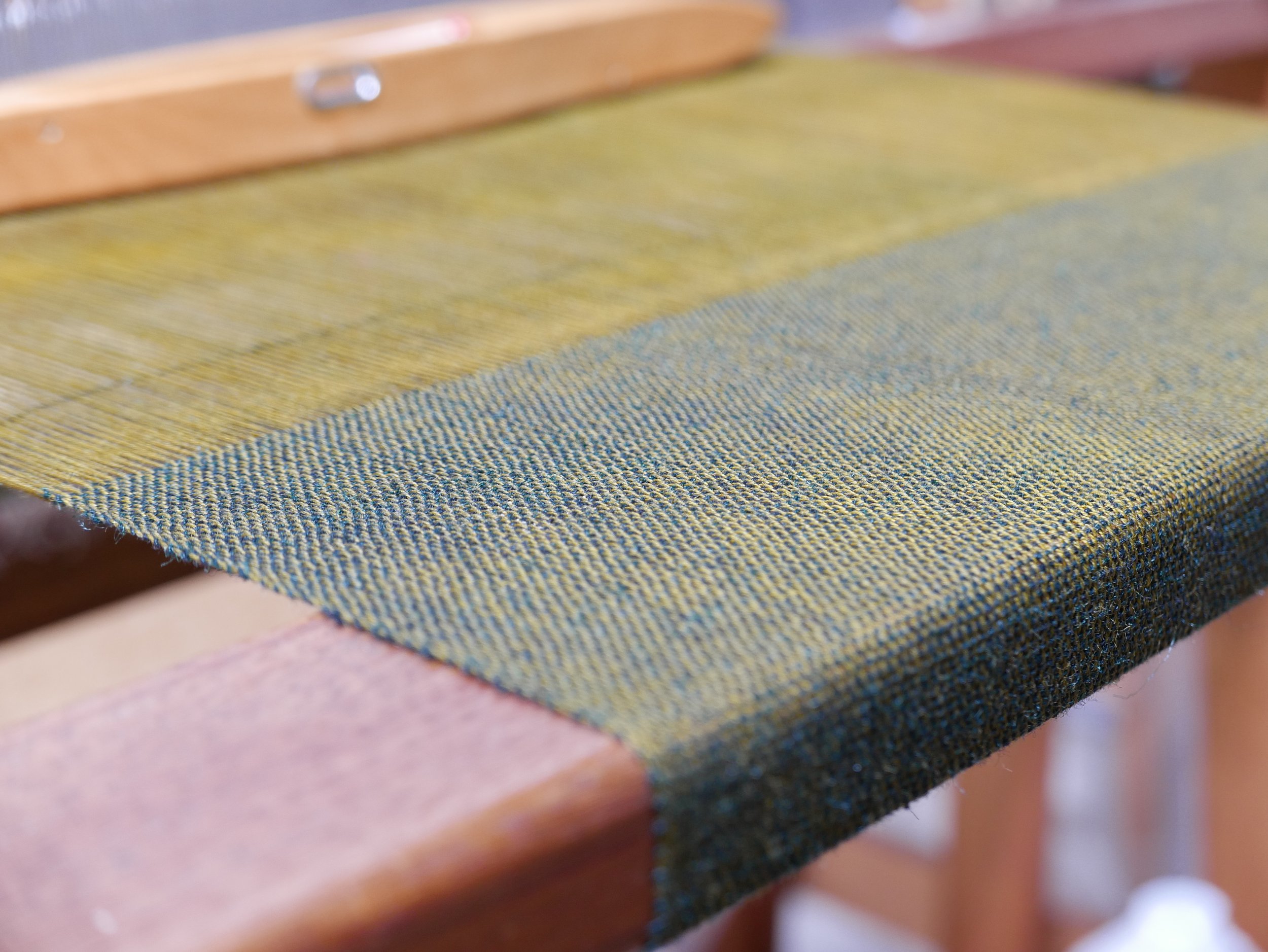 12. Towards the end of the warp length, a footer is woven.